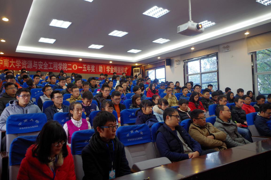 11月25日下午三点,2015年奖(助)学金颁奖仪式在采矿楼302报告厅举行,江南化工副总裁赵海涛、副总工程师杨仕春、企管部部长林波,宏大爆破副总工程师崔晓荣及金诚信矿业管理公司人力资源中心总经理助理蒋海文等设奖企业代表应邀出席,公司党委书记李顺求、经理周科平、党委副书记孙胜以及院学工办辅导员、获奖员工代表共120余人参加了本次典礼。